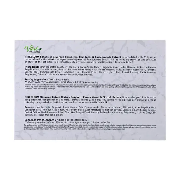 Recommended to drink one bottle daily. Shake well before consuming. Drink at least 1.5L water per day after consumption. As this is a botanical beverage, natural sediments may occur.