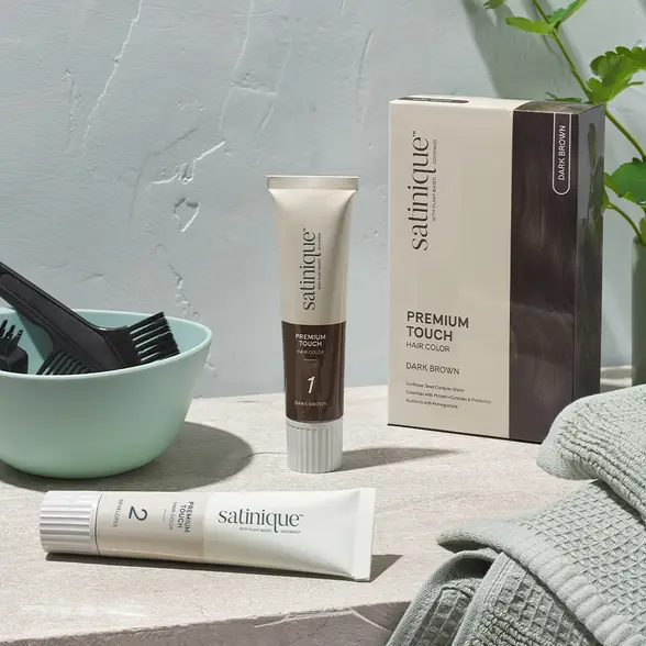 Part of Satinique’s Hair Colour range, this premium hair dye is made from plant-based ingredients. With protein extract for enhanced dye penetration, it offers lasting grey coverage while protecting the scalp’s barrier. A first for Satinique.