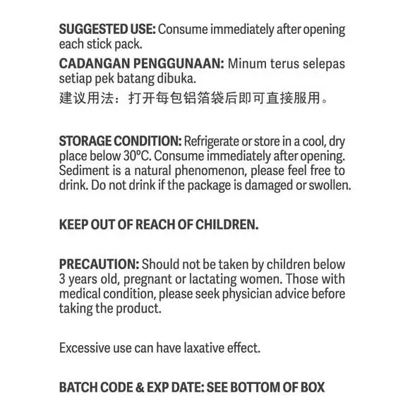 Should not be taken by children below 3 years old, pregnant or lactating women. Those with medical condition, please seek physician advice before taking the product.