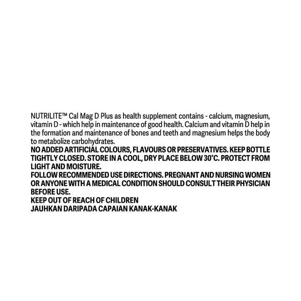 NUTRILITE Cal Mag D Plus provides optimal nutrients and minerals for strong and healthy bones, thanks to a formula with added vitamin D. Cal Mag D Plus fills the constant gap between the calcium you need and the calcium you take on a daily basis.