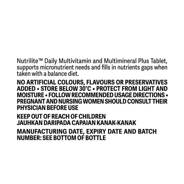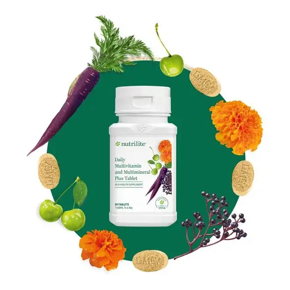 Nutrilite Daily Multivitamin and Multimineral Plus Tablet contains essential vitamins, minerals and plant concentrates with micronutrients for energy and your overall health.