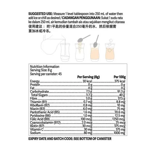 Add one serving (8g) to 250ml water.