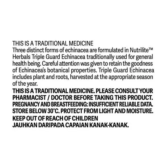NUTRILITE Triple Guard Echinacea is a traditional medicine. If symptoms persist, please consult a doctor.