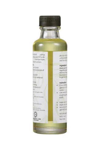 It contains essential oils such as: Peppermint oil (mentha piperita oil) Soothing fresh scent that creates a refreshing feeling when used in massages; enhances feelings of relaxation and rejuvenation. Eucalyptus oil (eucalyptus globulus oil) Known for its antibacterial properties that protects from germs. Nutmeg (myristica fragrans oil) A natural flavouring agent that also acts as a perfume with antibacterial and antioxidant properties. Palm oil (elaeis guineensis oil) Used as herbal remedy, helps to moisturise and texturise skin. Clove (eugenia caryophyllus oil) Help reduce sagging skin, removes dead skin cells for a youthful and radiant-looking skin.