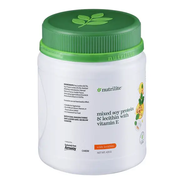 Nutrilite Mixed Soy Protein & Lecithin with Vitamin E provides 880.8mg of lecithin per serving. It contains vitamin E, extracted from plant oils to protect fat in our body tissue from oxidation.