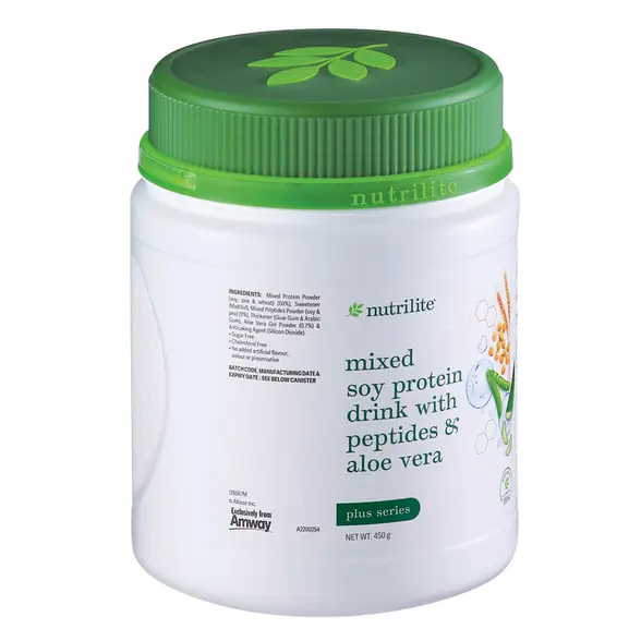 Nutrilite Mixed Soy Protein Drink with Peptides & Aloe Vera contains Tri-blend Plant Protein (Soy, Pea & Wheat Protein), Dual Peptides (Soy & Pea) and NutriCert™-sourced Aloe Vera. This combination can help improve mobility and muscle strength, making it suitable for everyone, especially physically active individuals.