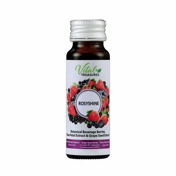 Ingredients :Purified Water, Mixed Berries Essence (Strawberry, Chokeberry, Blackberry, Elderberry, Blackcurrant), Fructose, Vitamin C, Blueberry, Rose Petal Extract (Japan Patented), contains permitted flavoring, Grape Seed Extract, Acai Berry, Vitamin E, Vitamin A.