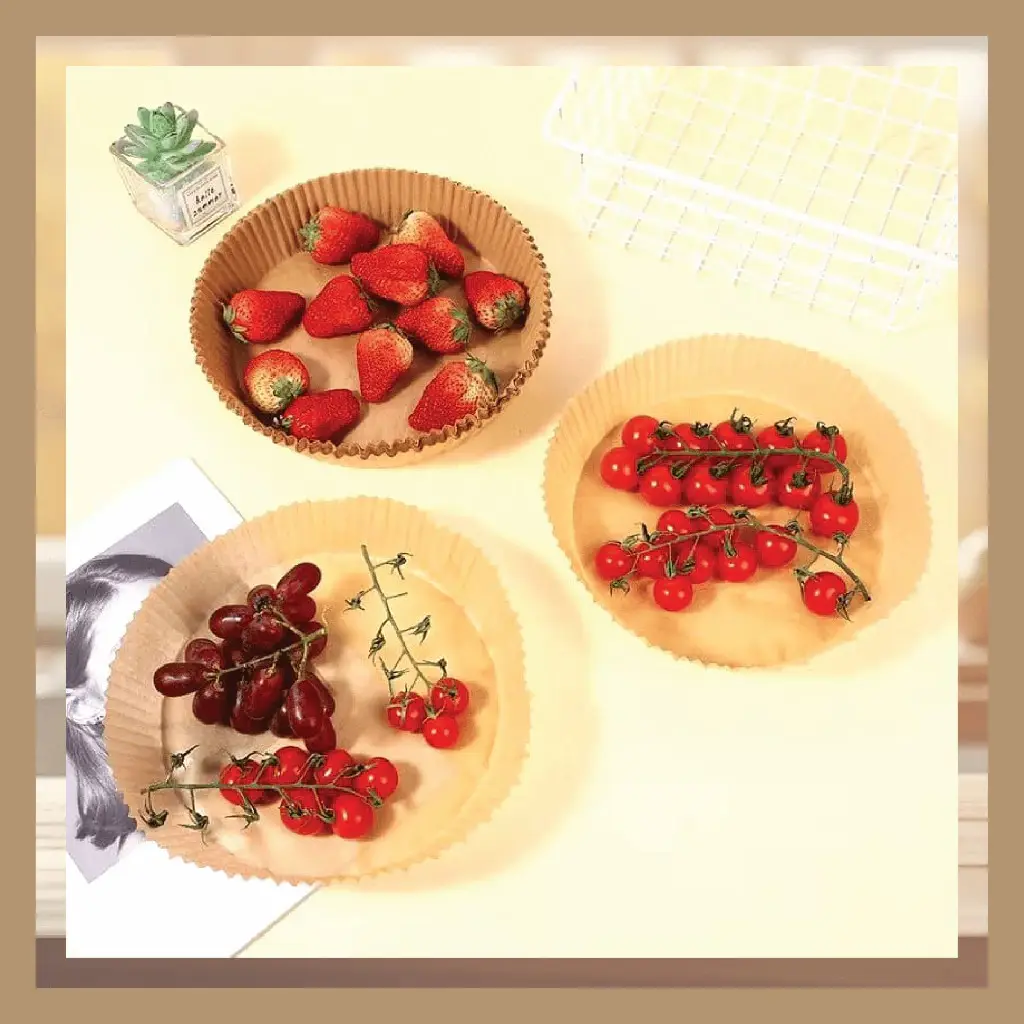 Suitable for air fryer, microwave oven, oven, steamer, kitchen, etc. The paper lining can be used for baking, baking, frying or holding food, suitable for home baking, camping, barbecue, summer parties, etc., light and practical.