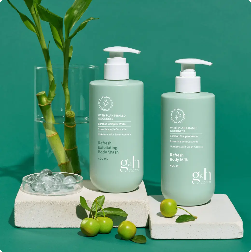 g&h™ Refresh Body Milk is a lightweight, plant-based body lotion designed to instantly hydrate and revitalize your skin. Its milky texture absorbs quickly without leaving a greasy residue, making it perfect for daily use. Infused with natural ingredients, it helps maintain the skin's moisture barrier and provides antioxidant protection.